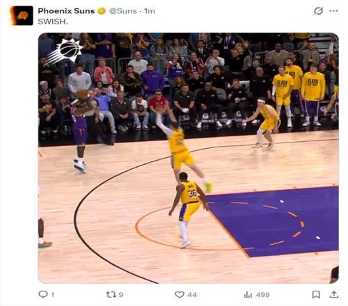 湖人队记迈克-特鲁戴尔:在终场前0.9秒湖人居然让残阵太阳命中第22个三分球。