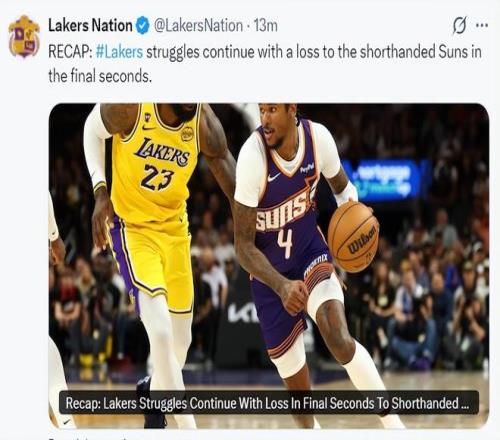 北京时间2月27日,太阳主场113-110准绝杀湖人,此役后湖人吞下三连败,更为惨烈的是湖人连续两场比赛被对手准绝杀。此役湖人一度领先13分之多,可第三节詹姆斯下场2分钟就被打10-0崩盘,末节湖人艰难抹平分差,只可惜小奥尼尔0.9秒完成了准绝杀的三分。
