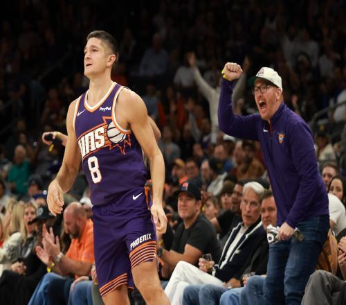 本场比赛,双方替补席差距依旧不小,其中湖人替补3人合计拿到25分;而太阳则是有5人得分,格雷森·阿伦自己就28分,合计砍下56分!