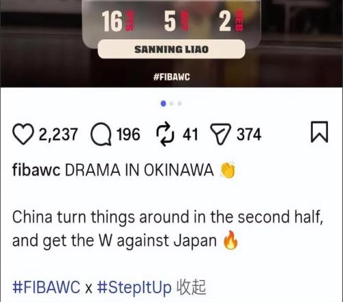 国际篮联发布了一个推文,表示: