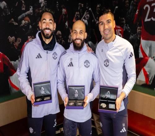卡塞米罗、马特乌斯-库尼亚和姆伯莫三名曼联球员在周四训练结束后于卡灵顿领取了英超奖项。他们都因在英超达成重要里程碑而获得了纪念奖章。