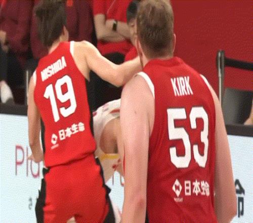 胡金秋在篮下被日本队归化球员用膝盖顶撞肚子,后者在胡金秋举起球的瞬间碰瓷倒地,裁判给了胡金秋一个违体犯规,日本队获得3罚1掷的机会。