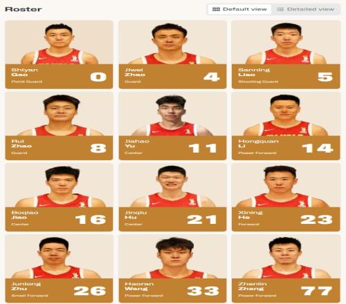 FIBA官网更新了本场比赛的大名单,中国男篮这边与上场对阵日本男篮时的12人相同。