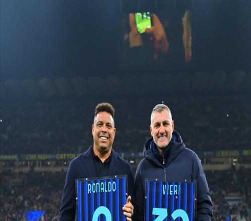 罗纳尔多和维埃里亲临圣西罗,并获赠国米纪念球衣