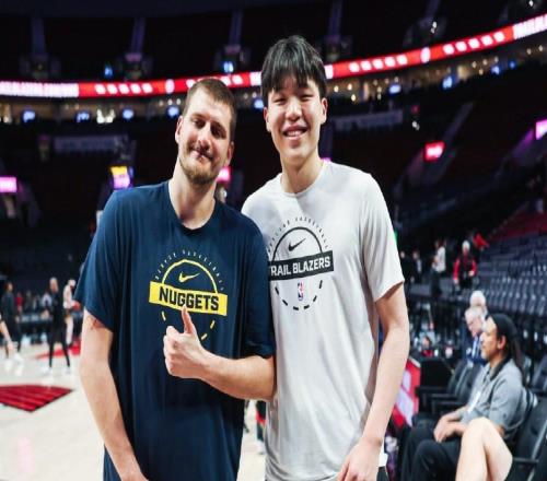 北京时间2月21日,NBA常规赛开拓者主场对阵掘金,其中掘金是背靠背第二场,赛前杨瀚森与偶像约基奇会面交流。约基...