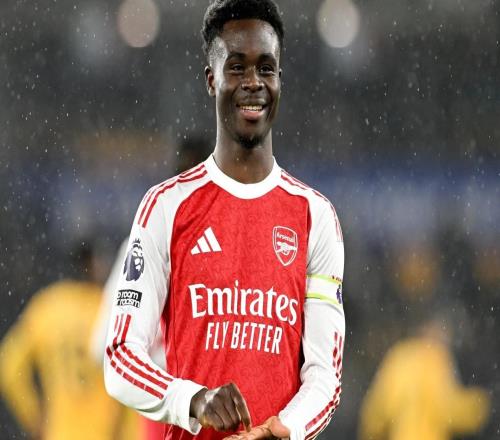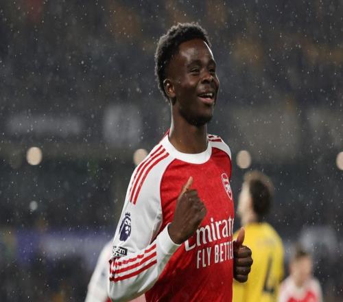 英超第31轮客场挑战狼队的比赛中,萨卡开场仅5分钟就为阿森纳首开记录。在取得这个进球之后,萨卡做出了一个在...
